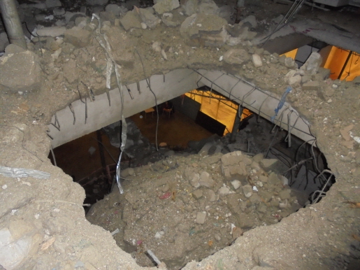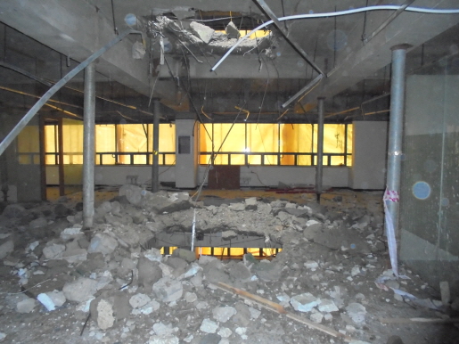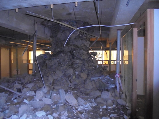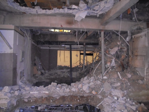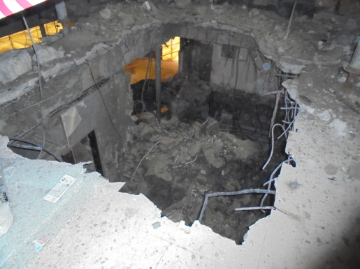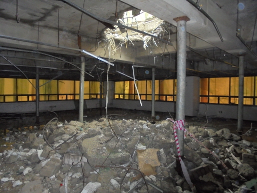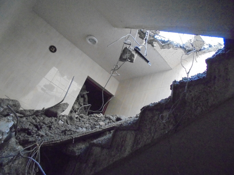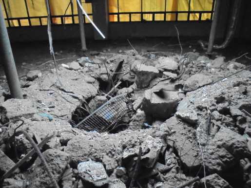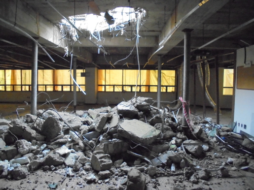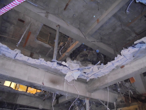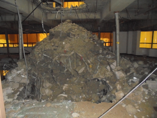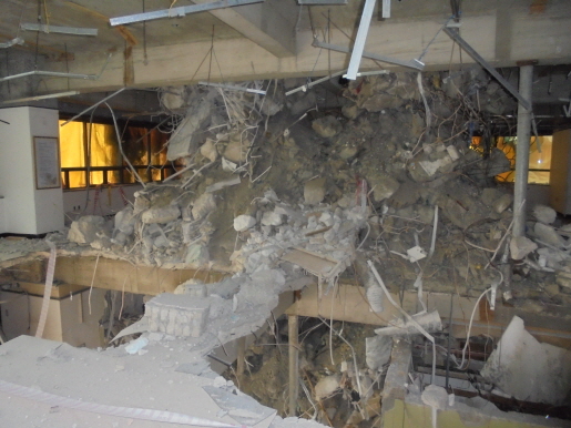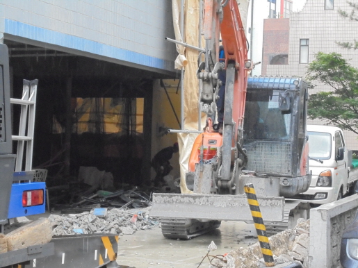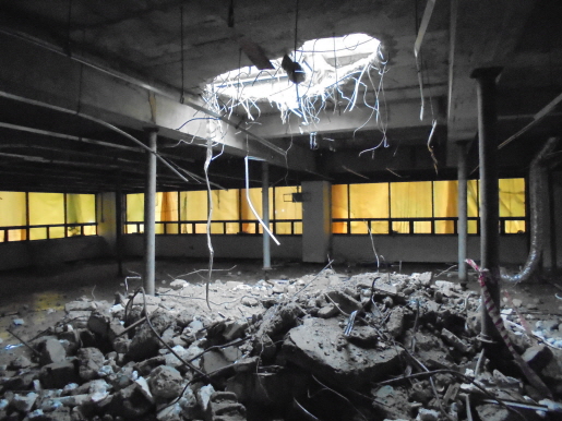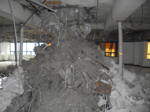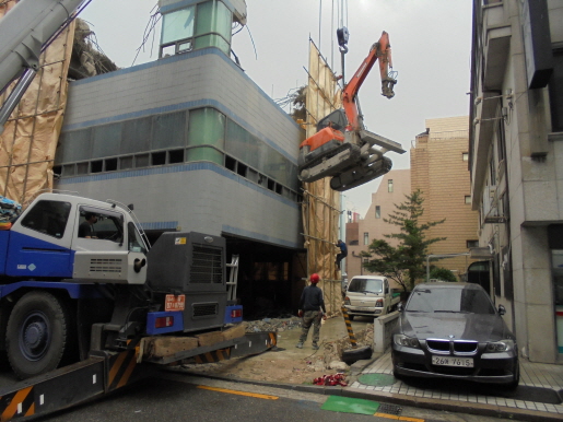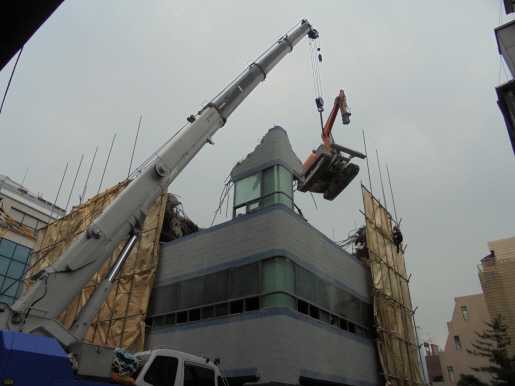 ▶지상 철거장비 투입 위해 건물 위 철거장비 철수